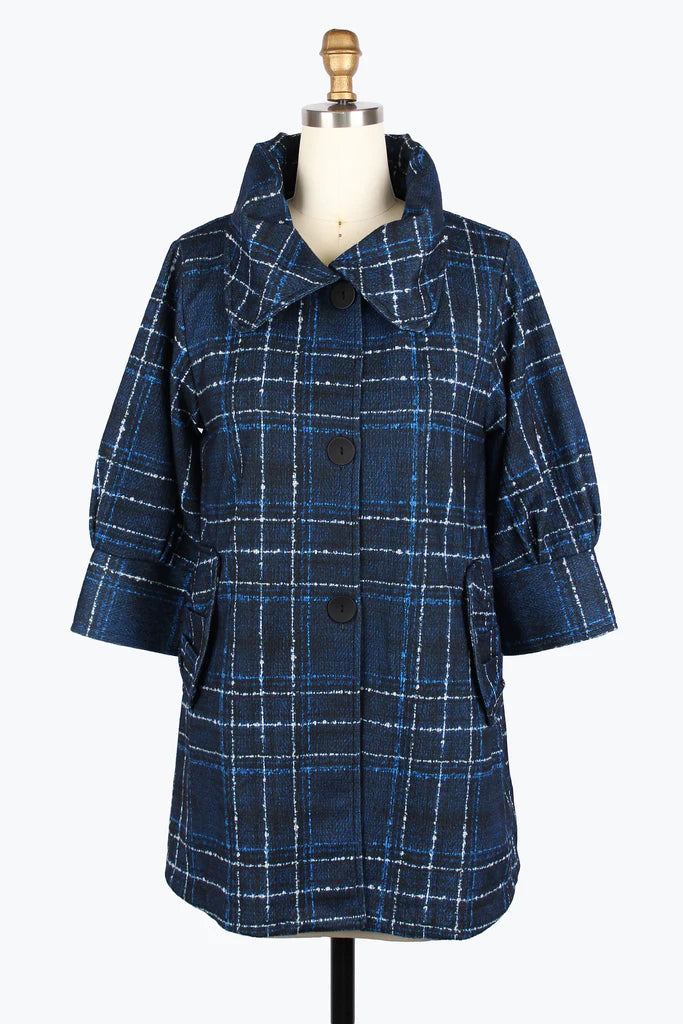 Damee Plaid Long Swing Jacket 5009-Blu F25