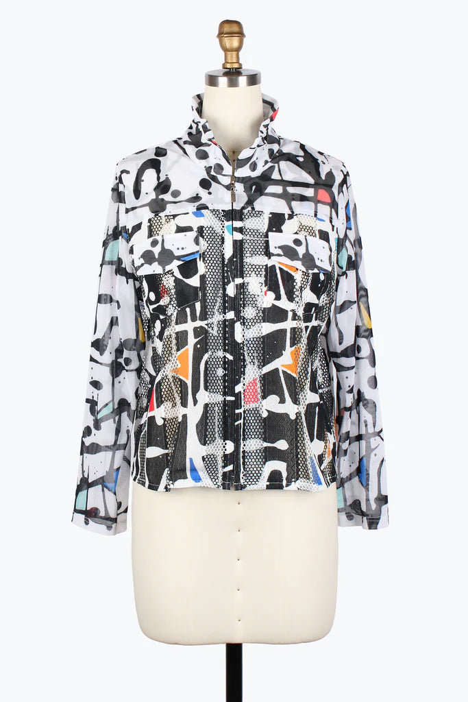 Damee2490-WHT PAINT SPLASH FULL ZIP NET-MESH JACKET