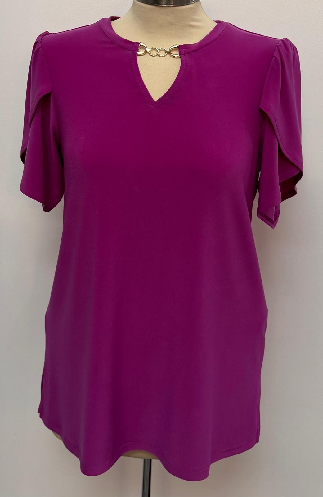 Discover the perfect blend of style and comfort with this Joseph Ribkoff pullover. Featuring a chic v-neck and keyhole details, this hip-length piece boasts a regular fit that flatters any silhouette. The puff short sleeves add a touch of elegance, making it ideal for casual, office, or night-out occasions. Its plain pattern and versatile style ensure you'll always look effortlessly fashionable.
