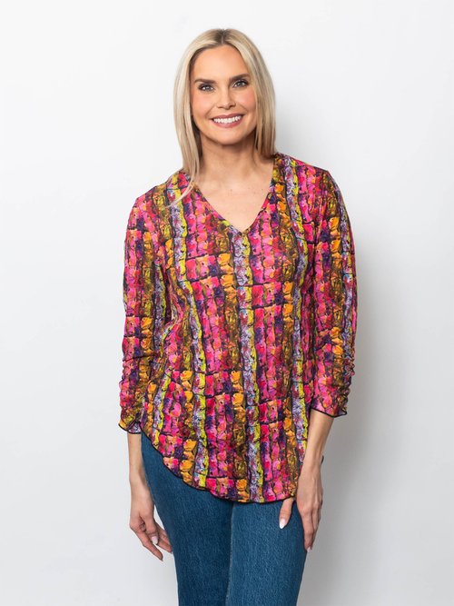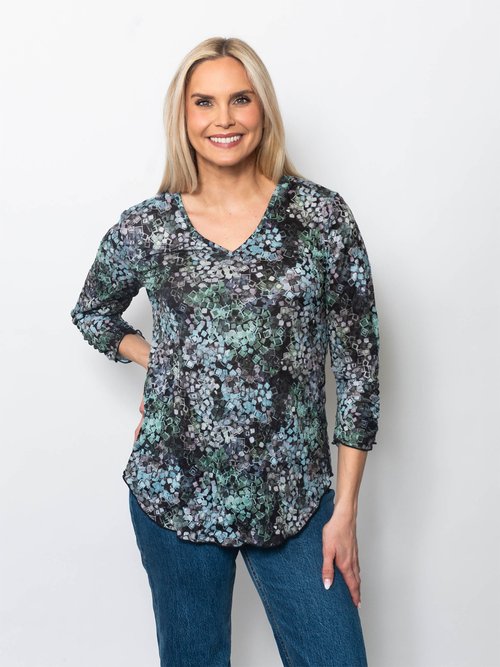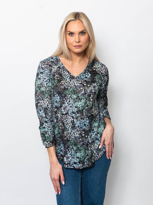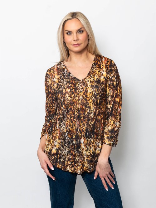 - Snoskins Printed Crinkle Mesh V-Neck top 89532-F25