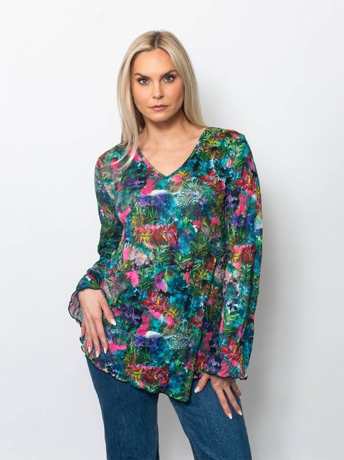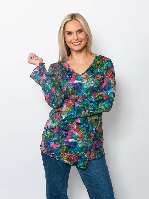 Snoskins Printed Crinkle Mesh V-Neck top 89532-F25
