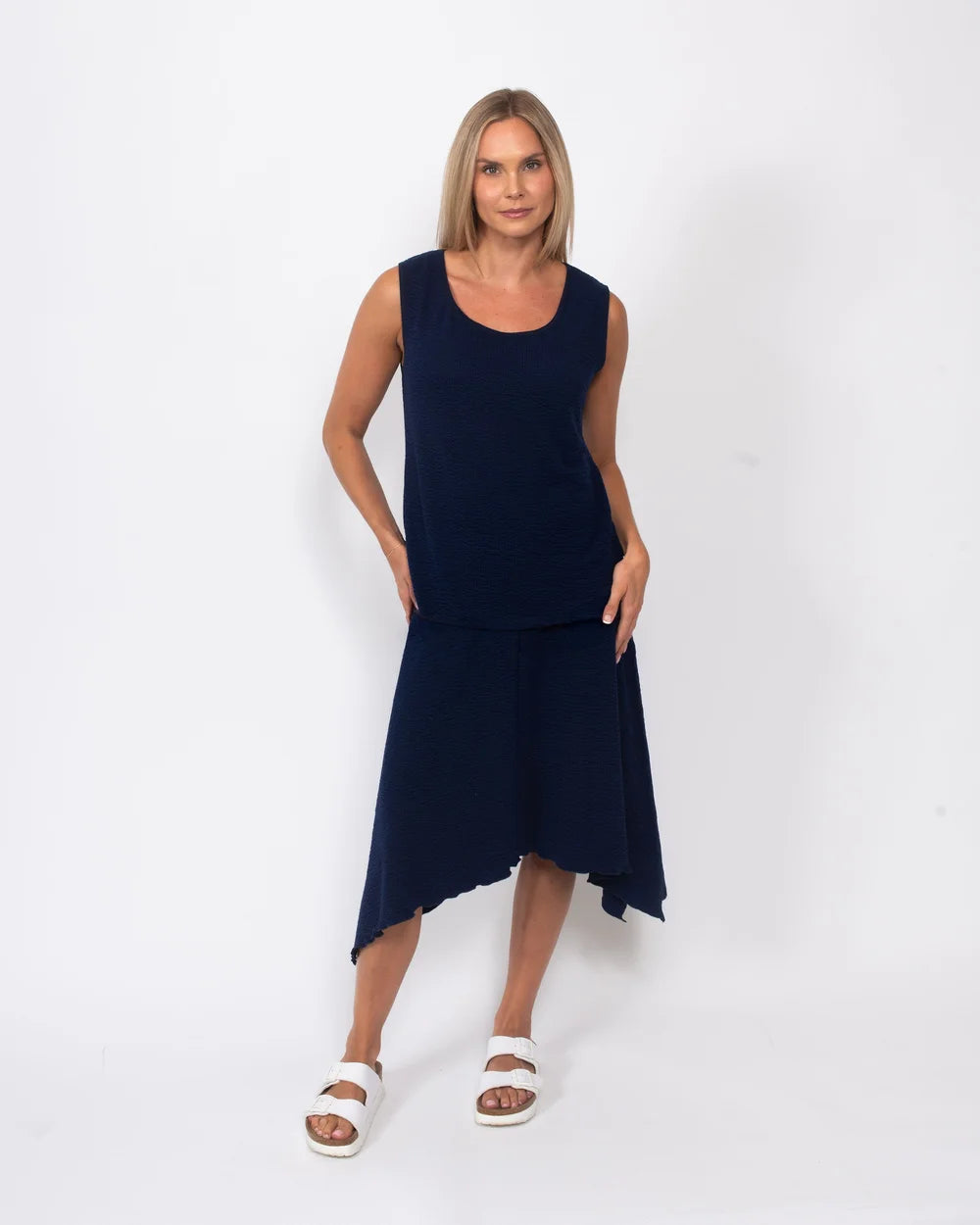 Snoskins Seersucker Collection Skirt w/ handkerchief hemline, elastic waist. Matching stitch 77725-26