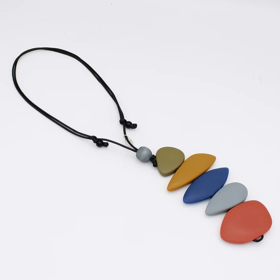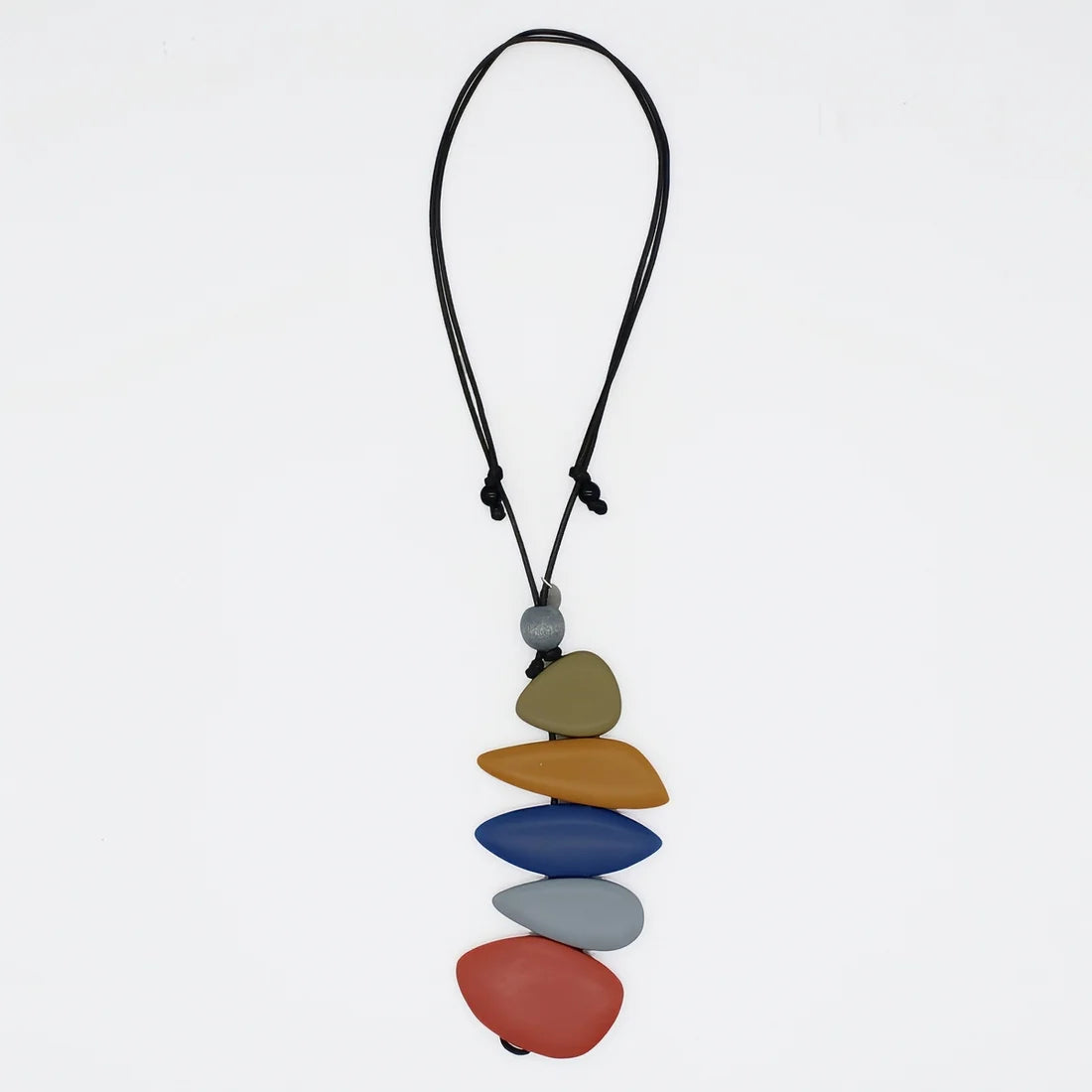 Inspired by nature’s quiet strength, the StoneStack pendant necklace features layered, vibrant beads that evoke the beauty of stacked stones in a tranquil landscape. With its colorful tones and organic form, this statement piece hangs from an adjustable black wax cord and brings a sense of balance and modern edge to any outfit. Wear it as a symbol of resilience, calm, and natural elegance.