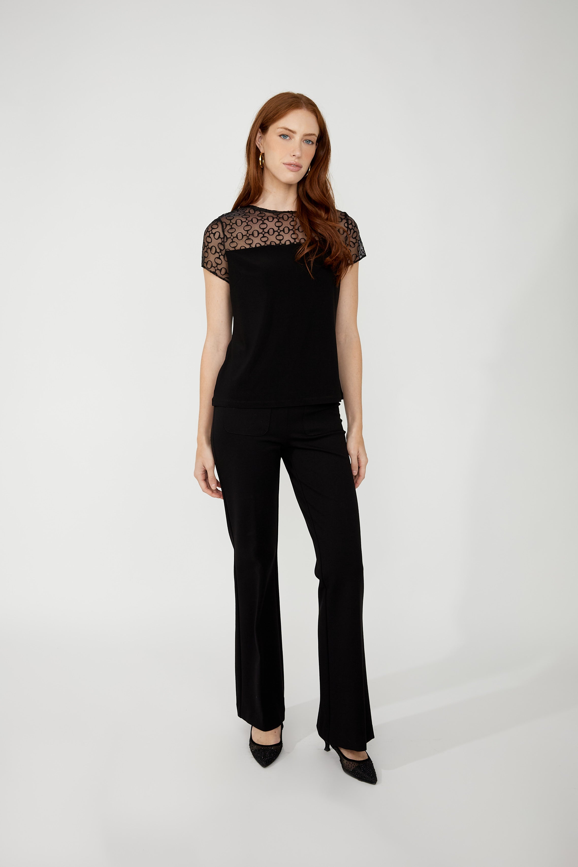 • Experience the perfect blend of comfort and elegance with this pullover from Frank Lyman. Designed with a crew neck and short, straight sleeves, this hip-length top features chic lace and jewel embellishments for a touch of sophistication. Ideal for casual, semi-formal, and night-out occasions, its regular fit ensures a flattering silhouette. Embrace the plain pattern for a versatile addition to your wardrobe.