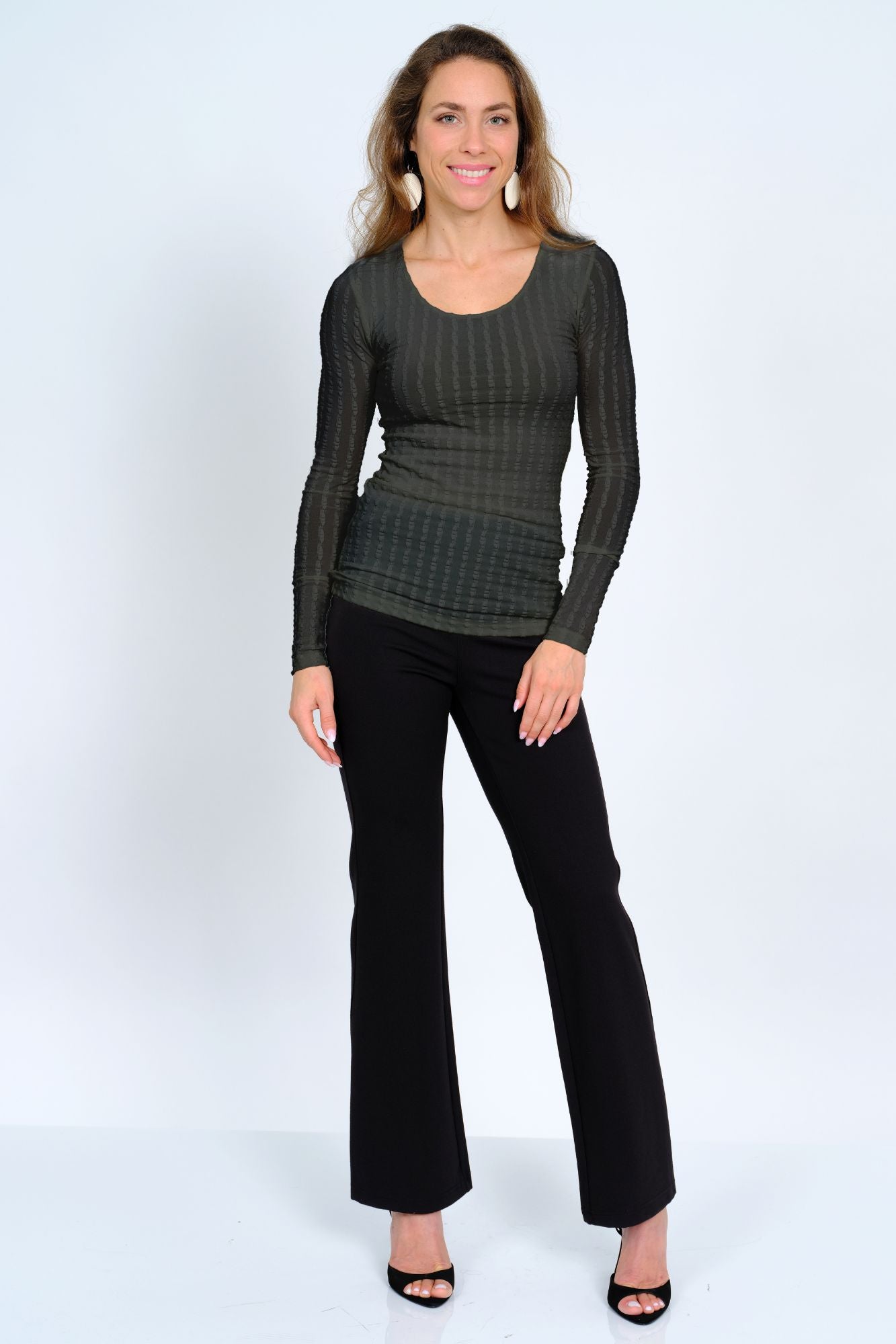 Soft Buttery Light Weight Ponte Flare Pant. Offers a side curve yolk to promote a beautiful silhouette when worn. Features a 30" inseam