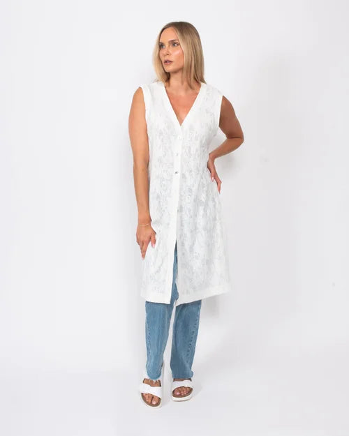 Long Cardigan sleeveless and high side slits, agoya shell button closure.