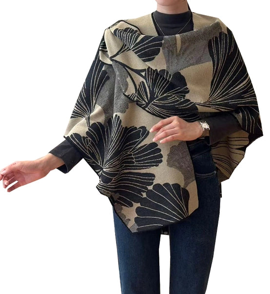 Winding River WrapBlack / Tan Large Ginkgoes Reversible Loop Wrap